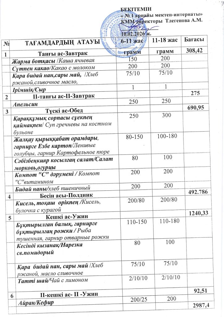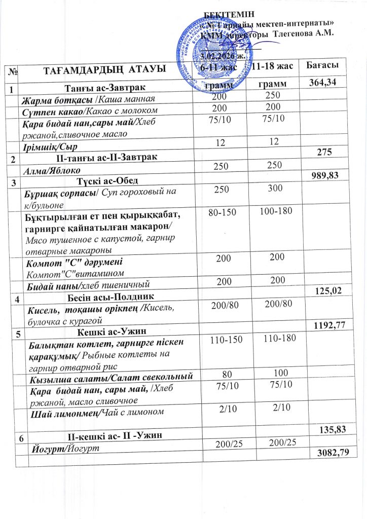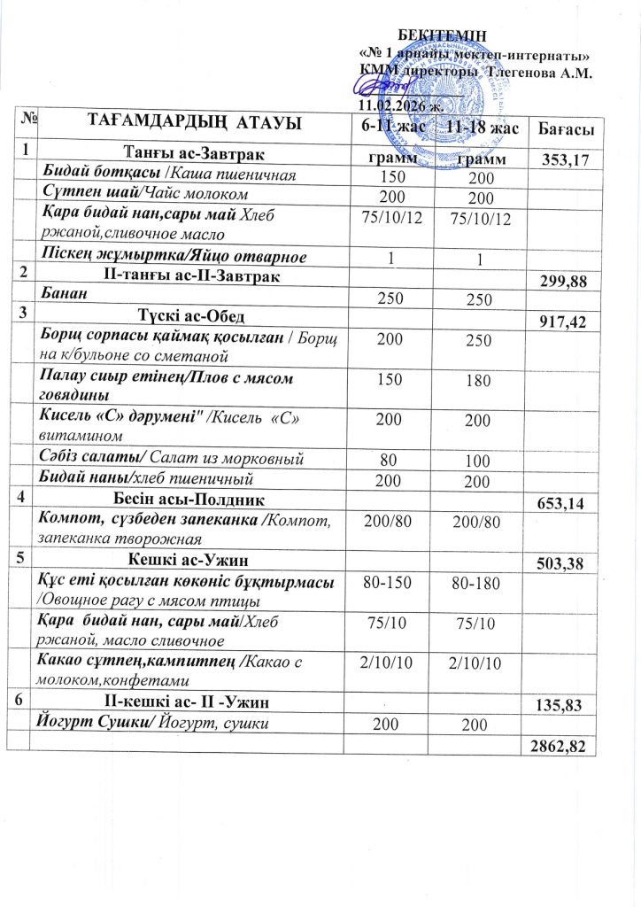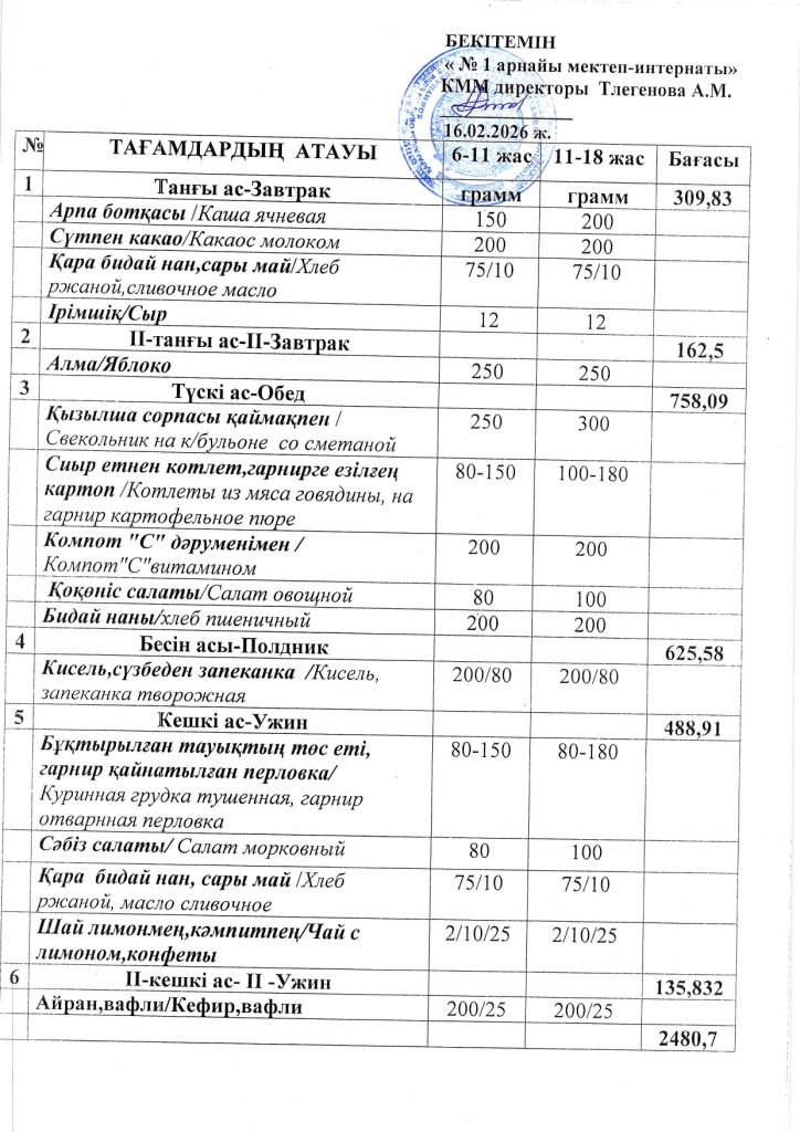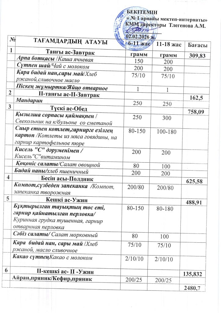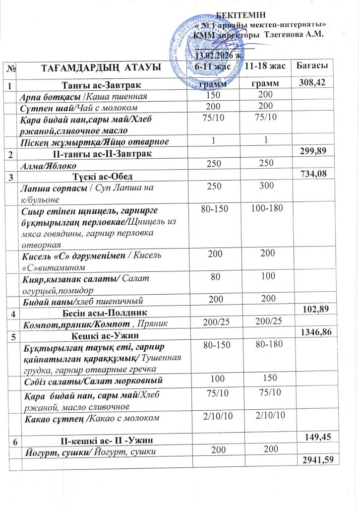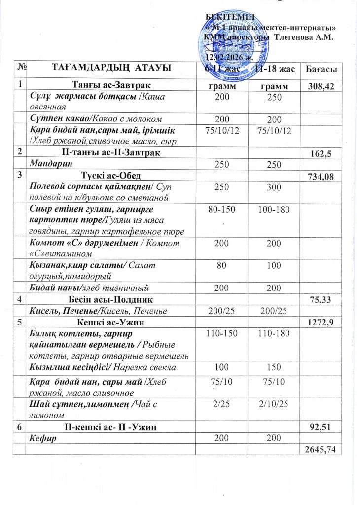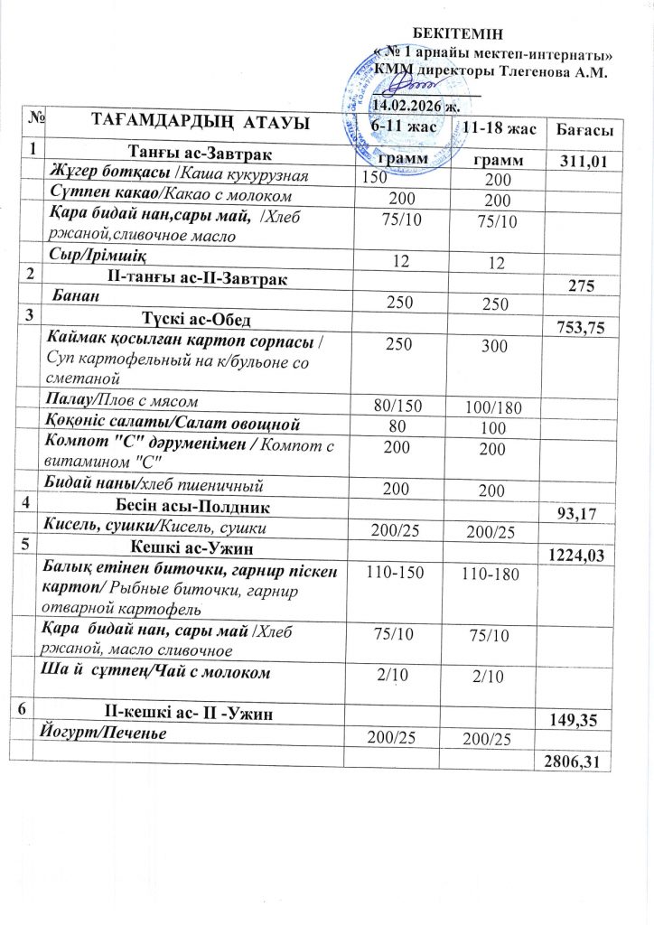 Ежедневная меню по школе
