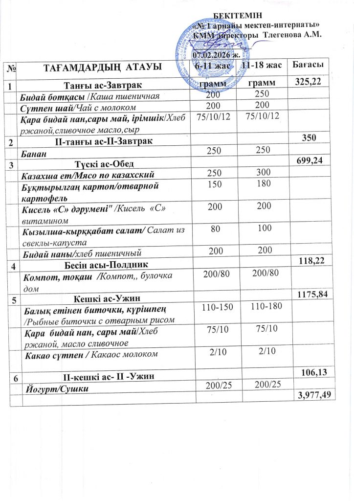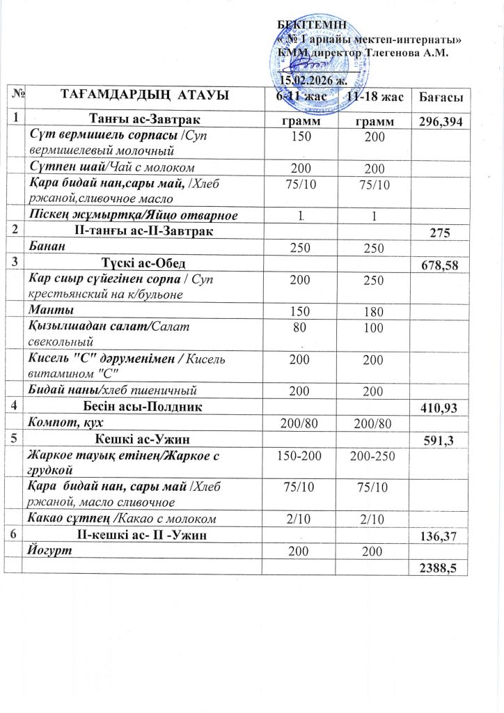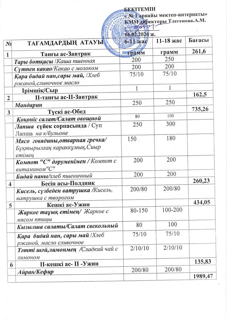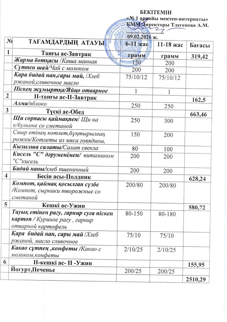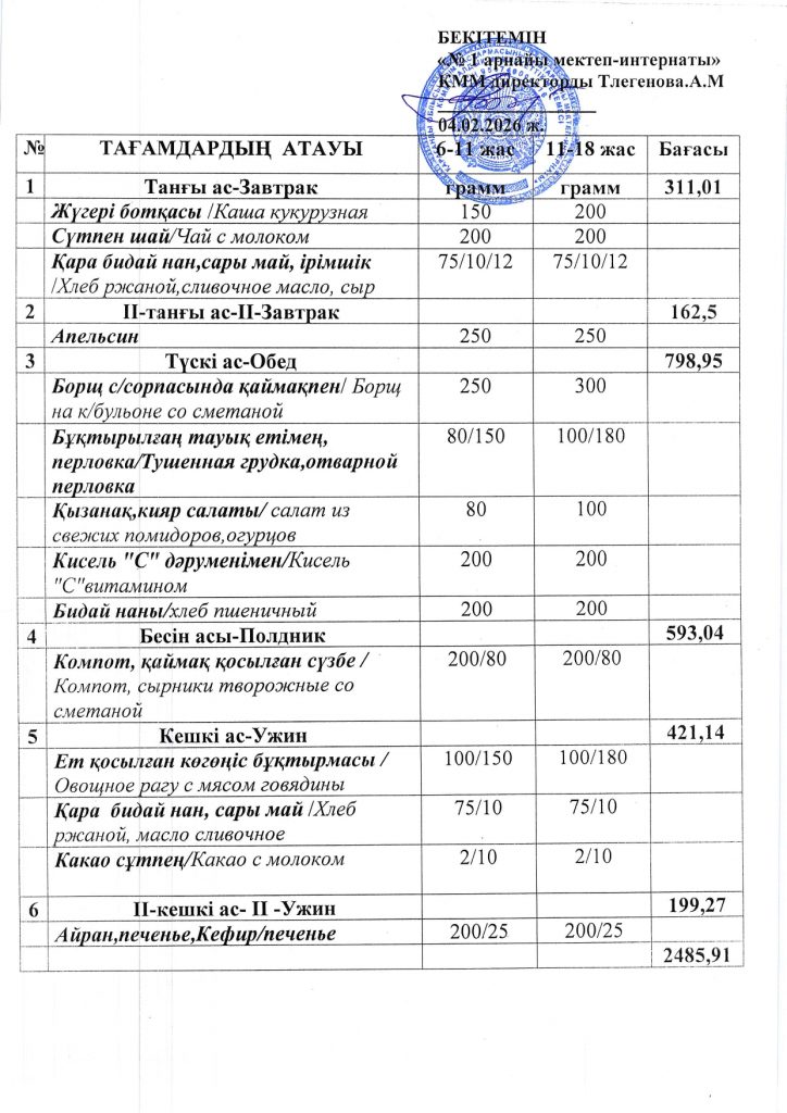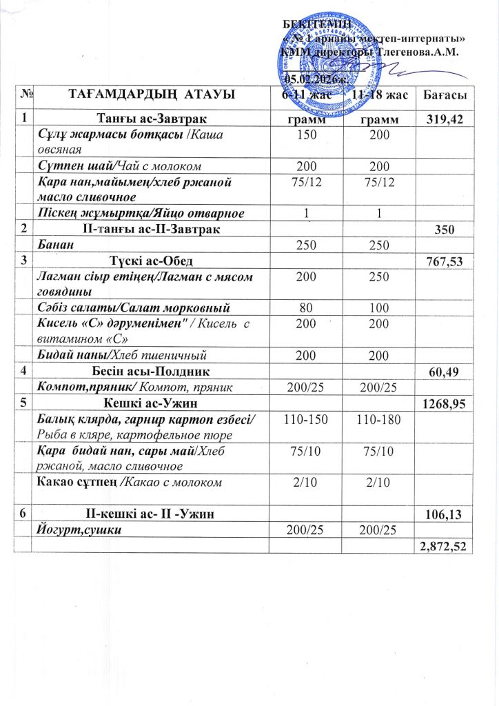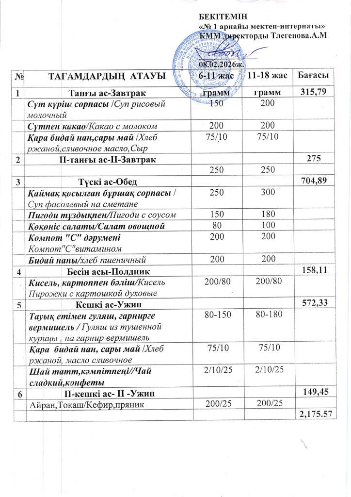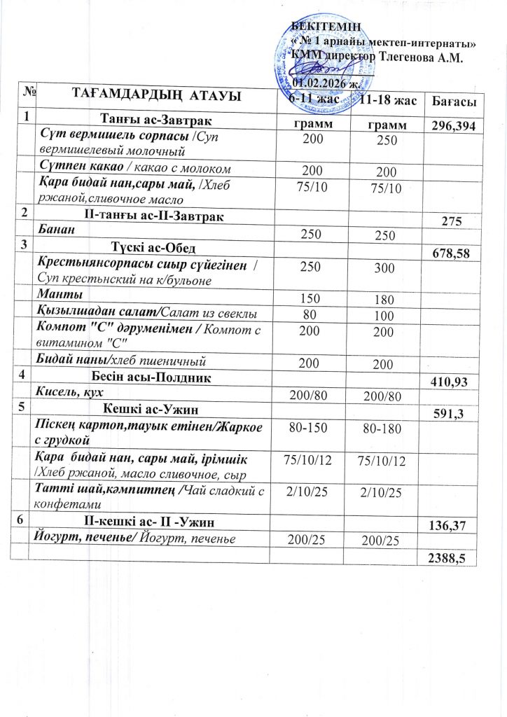 Ежедневная меню по школе