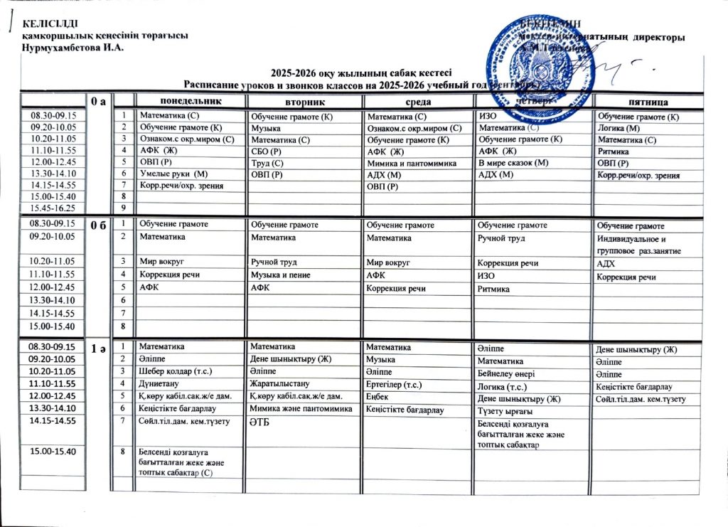 Расписание 1 полугодие
