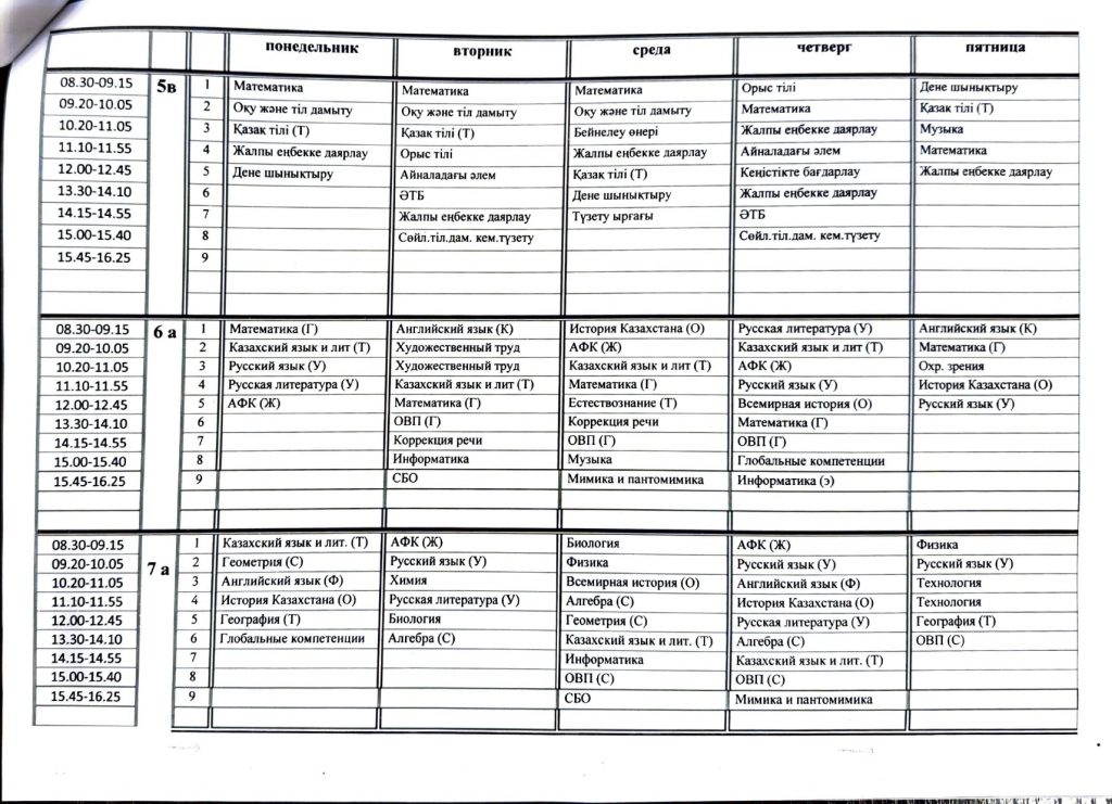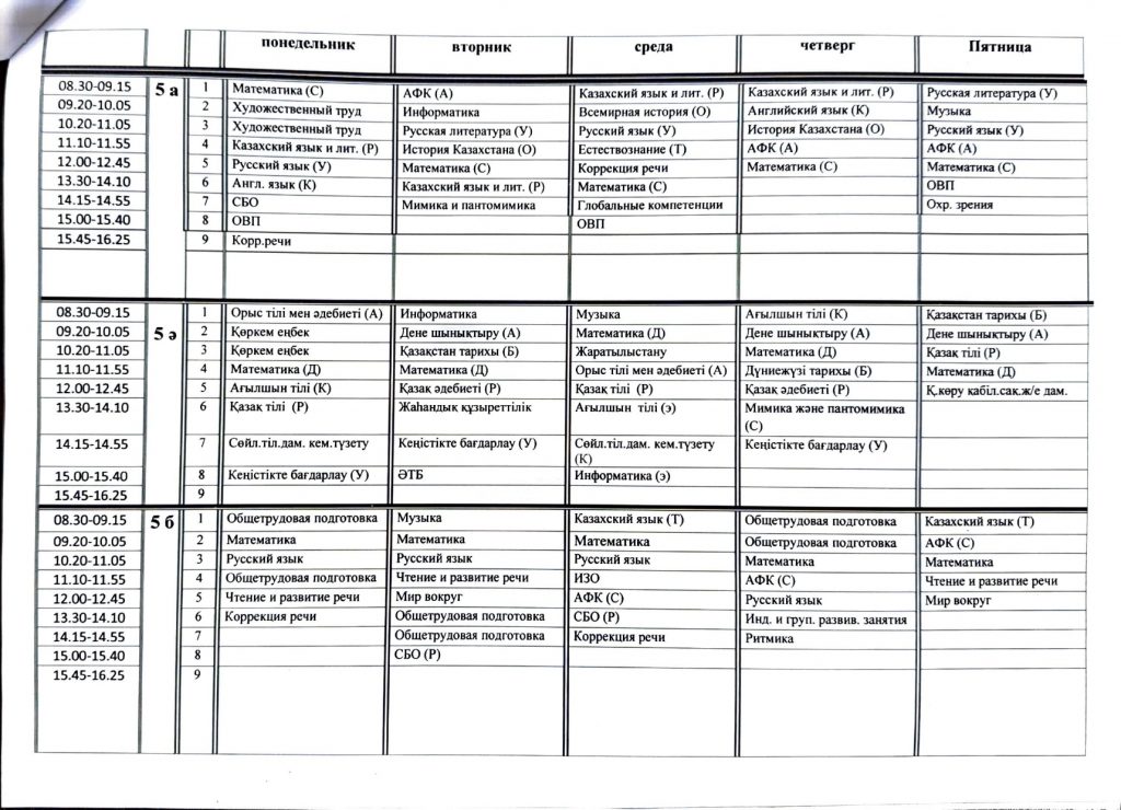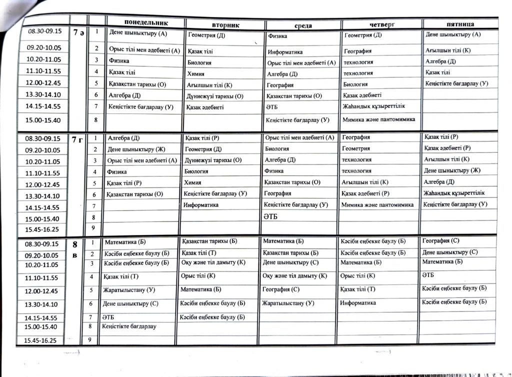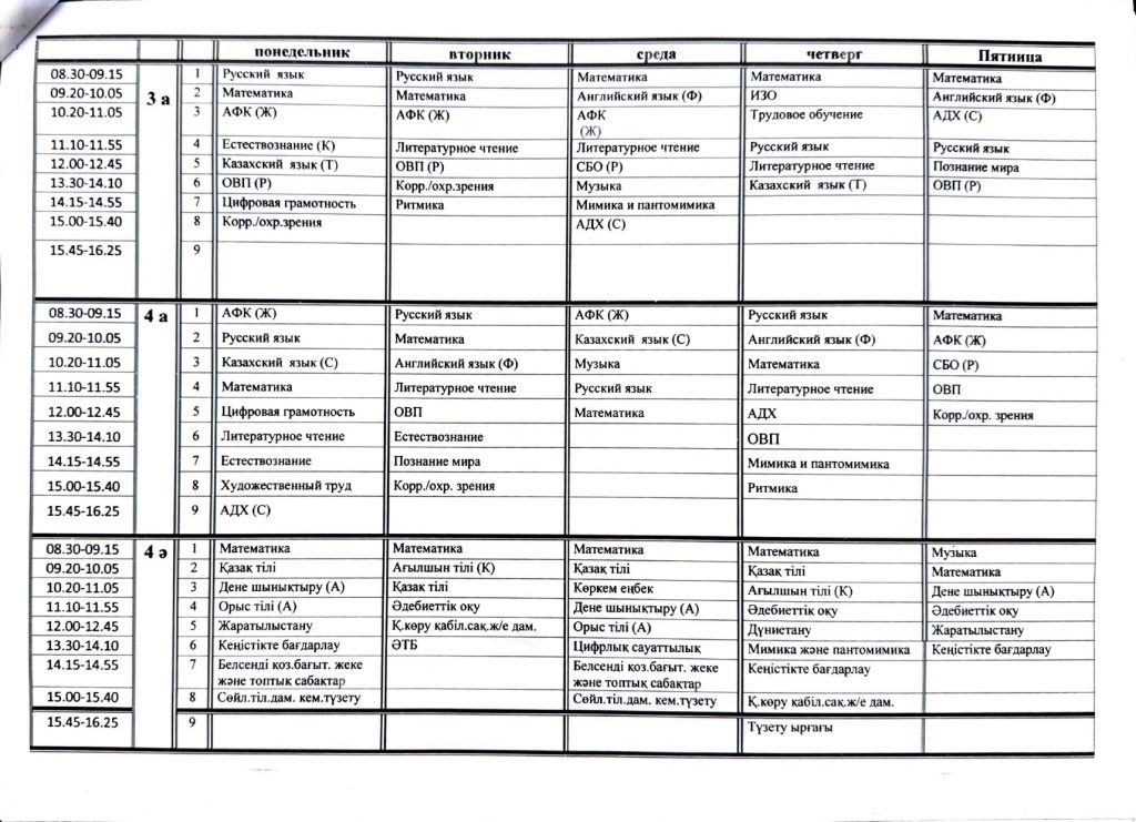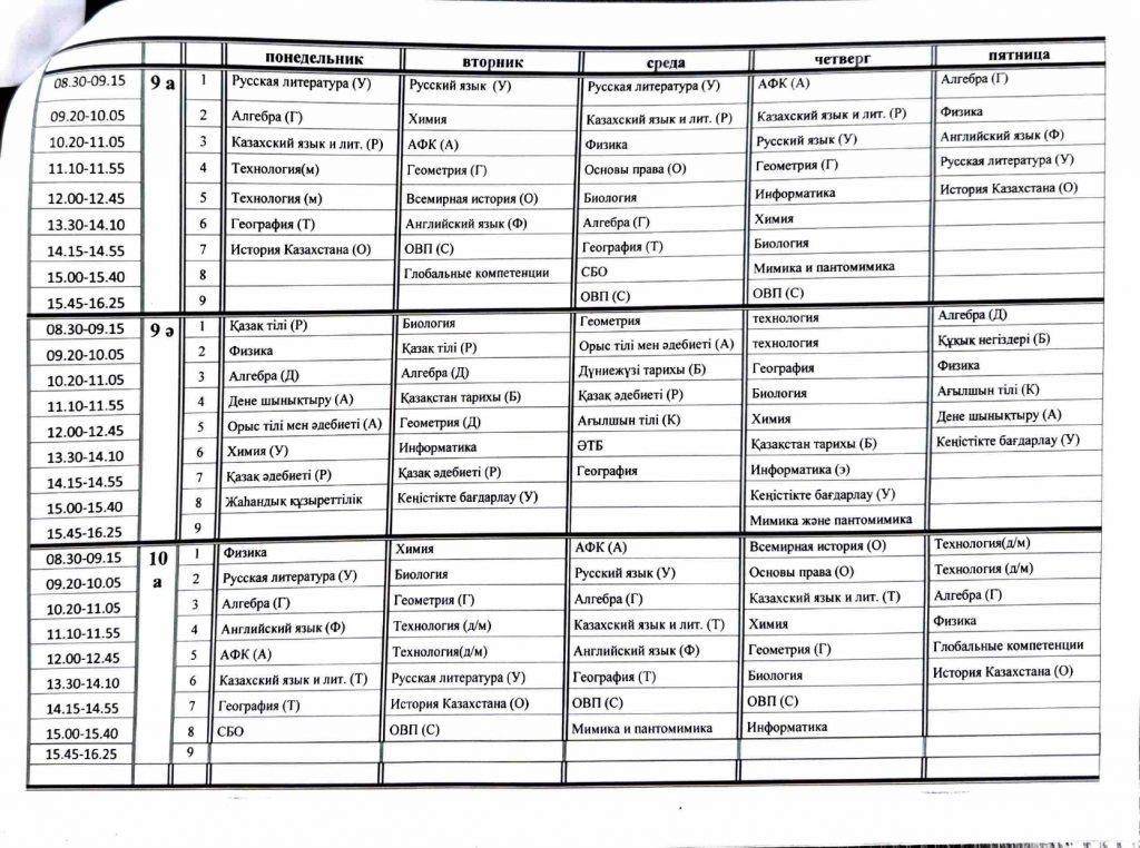 Расписание 2 полугодие